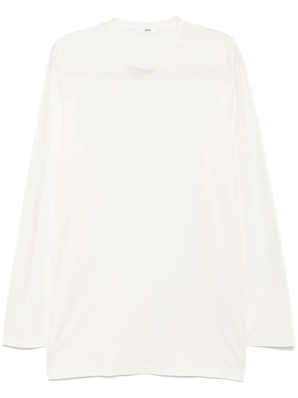 THIS WHITE ROUND-NECK T-SHIRT FEATURES LONG SLEEVES AND A STRAIGHT HEM. MADE FROM HIGH-QUALITY FABRIC, IT OFFERS BOTH COMFORT AND STYLE. PERFECT FOR ANY CASUAL OCCASION, THIS CLASSIC T-SHIRT IS A MUST-HAVE STAPLE IN ANY WARDROBE.