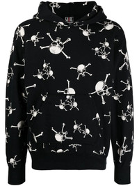 BLACK COTTON JERSEY TEXTURE SKULL PRINT ALL-OVER GRAPHIC PRINT CLASSIC HOOD FRONT POUCH POCKET LONG SLEEVES STRAIGHT HEM
