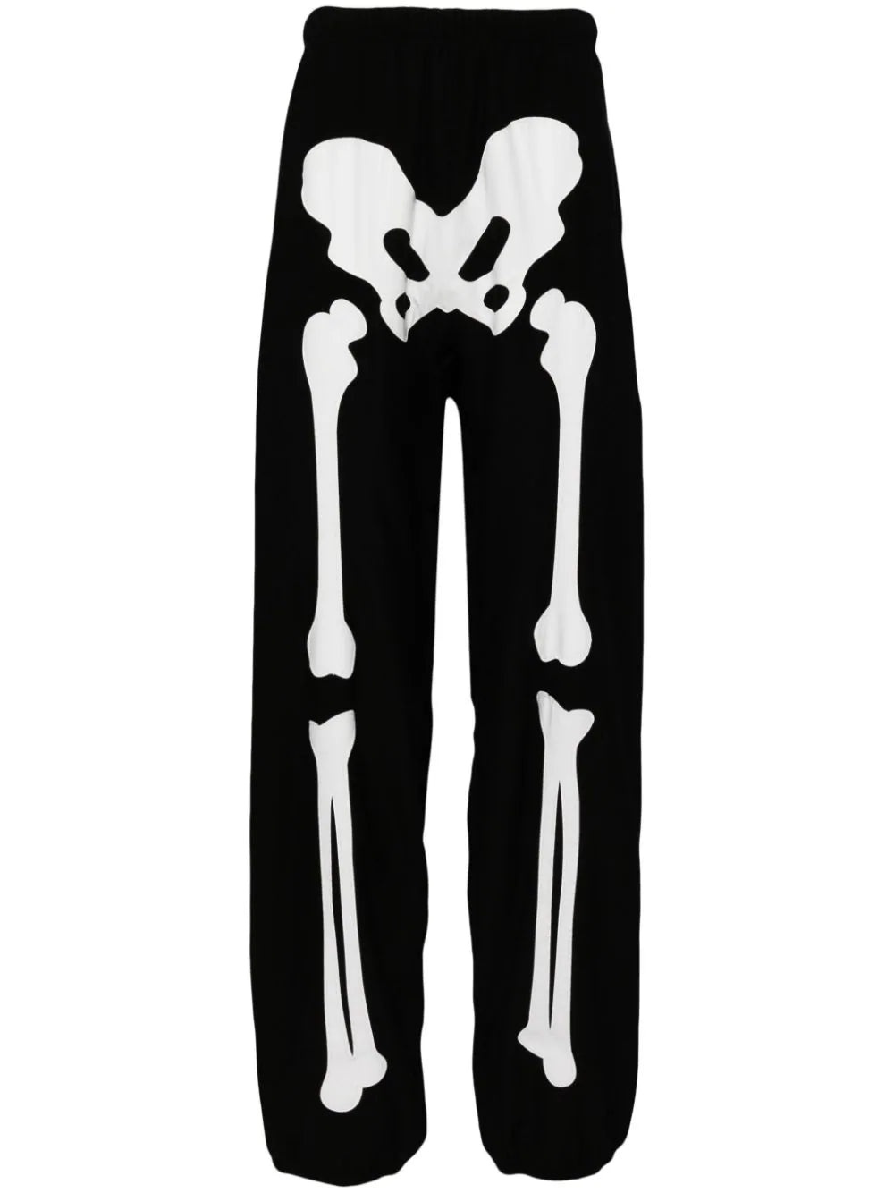 BLACK/WHITE COTTON BLEND BONE PATCH TWO-TONE DESIGN ELASTICATED WAISTBAND ELASTICATED ANKLES TWO SIDE INSET POCKETS