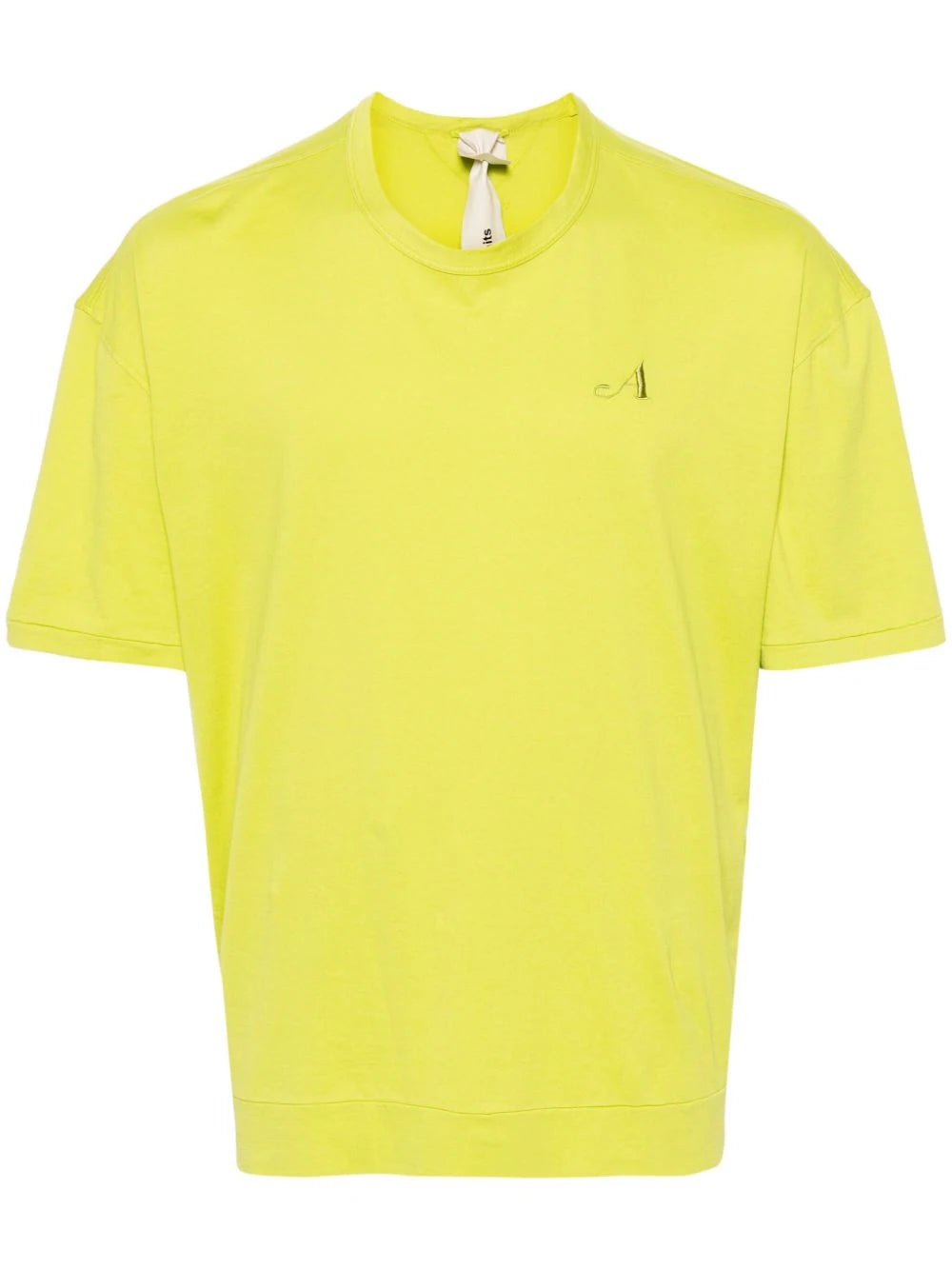 FLUORESCENT GREEN COTTON LIGHTWEIGHT JERSEY EMBROIDERED LOGO AT THE CHEST ROUND NECK DROP SHOULDER SHORT SLEEVES SHORT SIDE SLITS STRAIGHT HEM