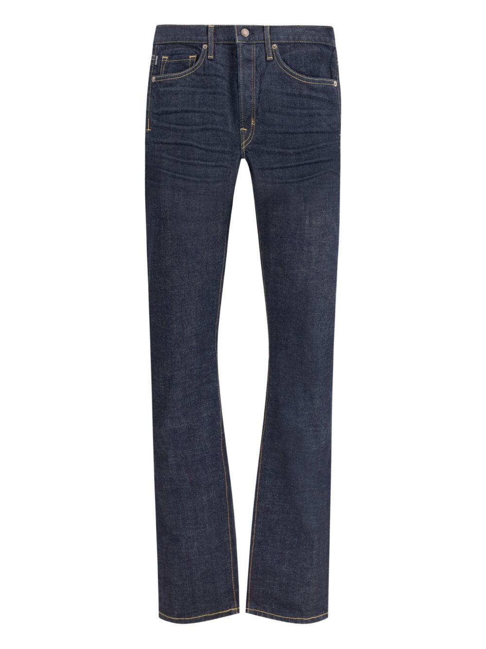 THESE EXPERT-CRAFTED BLUE COTTON JEANS FEATURE A STRAIGHT FIT FOR A CLASSIC SILHOUETTE. DESIGNED WITH A BUTTON FLY AND FIVE POCKETS, THEY OFFER BOTH STYLE AND PRACTICALITY. THE DISTINCTIVE YELLOW TOPSTITCHING ADDS A SUBTLE CONTRAST DETAIL, ENHANCING THE OVERALL REFINED YET CASUAL LOOK. PERFECT FOR VERSATILE, EVERYDAY WEAR WITH DEPENDABLE COMFORT.