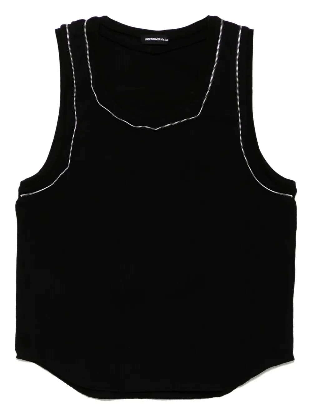 THIS COTTON VEST FEATURES A CLASSIC BLACK DESIGN WITH A SLEEVELESS CUT, CURVED HEM, AND ZIP DETAILS. CRAFTED FROM HIGH-QUALITY COTTON, IT PROVIDES COMFORT AND STYLE IN ONE. PERFECT FOR LAYERING OR AS A STATEMENT PIECE, THIS VERSATILE VEST WILL ELEVATE ANY OUTFIT WHILE KEEPING YOU ON-TREND.