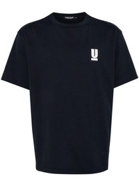 NAVY BLUE COTTON LOGO PRINT AT THE CHEST CREW NECK SHORT SLEEVES SLOGAN PRINT TO THE REAR