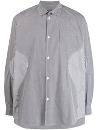 MIXED-PRINT COTTON SHIRT FROM UNDERCOVER FEATURING BLACK/WHITE, COTTON, CHECK PRINT, STRIPE PRINT, CLASSIC COLLAR, FRONT BUTTON FASTENING, DROP SHOULDER, LONG SLEEVES, BUTTONED CUFFS, REAR CURVED HEM AND CHEST PATCH POCKET.