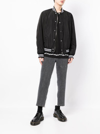 PANELLED CROPPED TROUSERS FROM UNDERCOVER FEATURING GREY, WHITE, COTTON, CROPPED, STRAIGHT LEG, FRONT BUTTON AND ZIP FASTENING, BELT LOOPS, ELASTICATED WAISTBAND, TWO SIDE INSET POCKETS, REAR PATCH POCKET AND LOGO PRINT TO THE REAR.