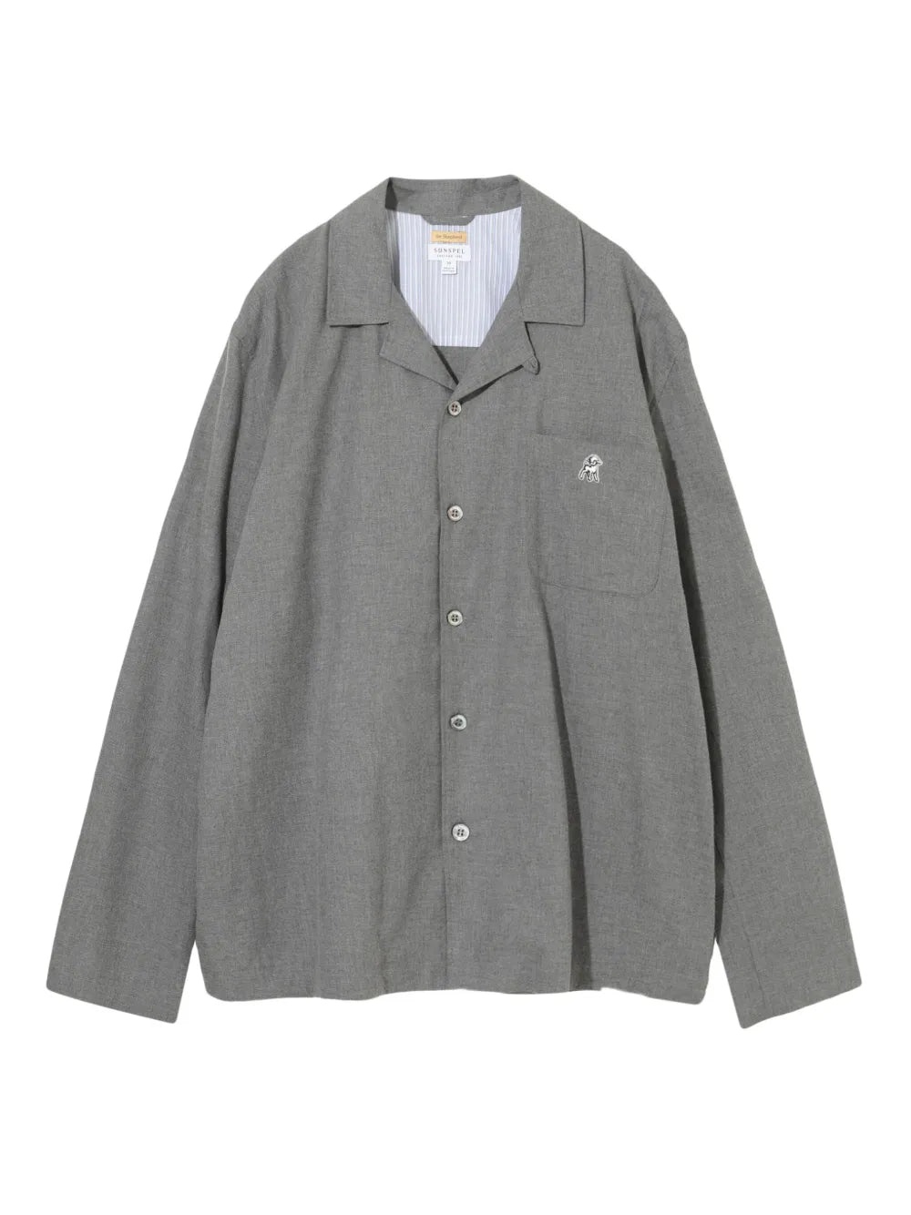 THIS GREY BUTTON-UP SHIRT FEATURES A PRACTICAL CHEST POCKET FOR ESSENTIAL ITEMS. SECURED WITH A TRADITIONAL BUTTON FASTENING FOR CLASSIC STYLING VERSATILITY. DISTINGUISHED BY SOPHISTICATED STRIPED DETAILING AT THE COLLAR, ADDING SUBTLE VISUAL INTEREST. FINISHED WITH AN AUTHENTIC LOGO LABEL AT THE BACK, SIGNIFYING PREMIUM CRAFTSMANSHIP AND BRAND HERITAGE.