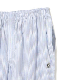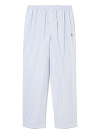 THESE LIGHT BLUE TROUSERS FEATURE AN ELEGANT PINSTRIPE PATTERN FOR REFINED VISUAL APPEAL. DESIGNED WITH A COMFORTABLE ELASTICATED WAISTBAND ENSURING OPTIMAL FIT AND MOVEMENT. FUNCTIONAL SIDE POCKETS PROVIDE CONVENIENT STORAGE, WHILE THE DISTINCTIVE LOGO PATCH DETAIL ADDS A SUBTLE BRAND SIGNATURE. A SOPHISTICATED BALANCE OF COMFORT AND PROFESSIONAL AESTHETICS.