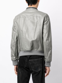 ZIP-UP BIKER JACKET FROM UNDERCOVER FEATURING ANTHRACITE GREY, STAND-UP COLLAR, PRESS-STUD FASTENING COLLAR, TWO FRONT FLAP POCKETS, TWO ZIP-FASTENING CHEST POCKETS, LONG SLEEVES, CUFF ZIPS, FRONT ZIP FASTENING, STRAIGHT HEM, RIBBED TRIM AND STOWAWAY HOOD.