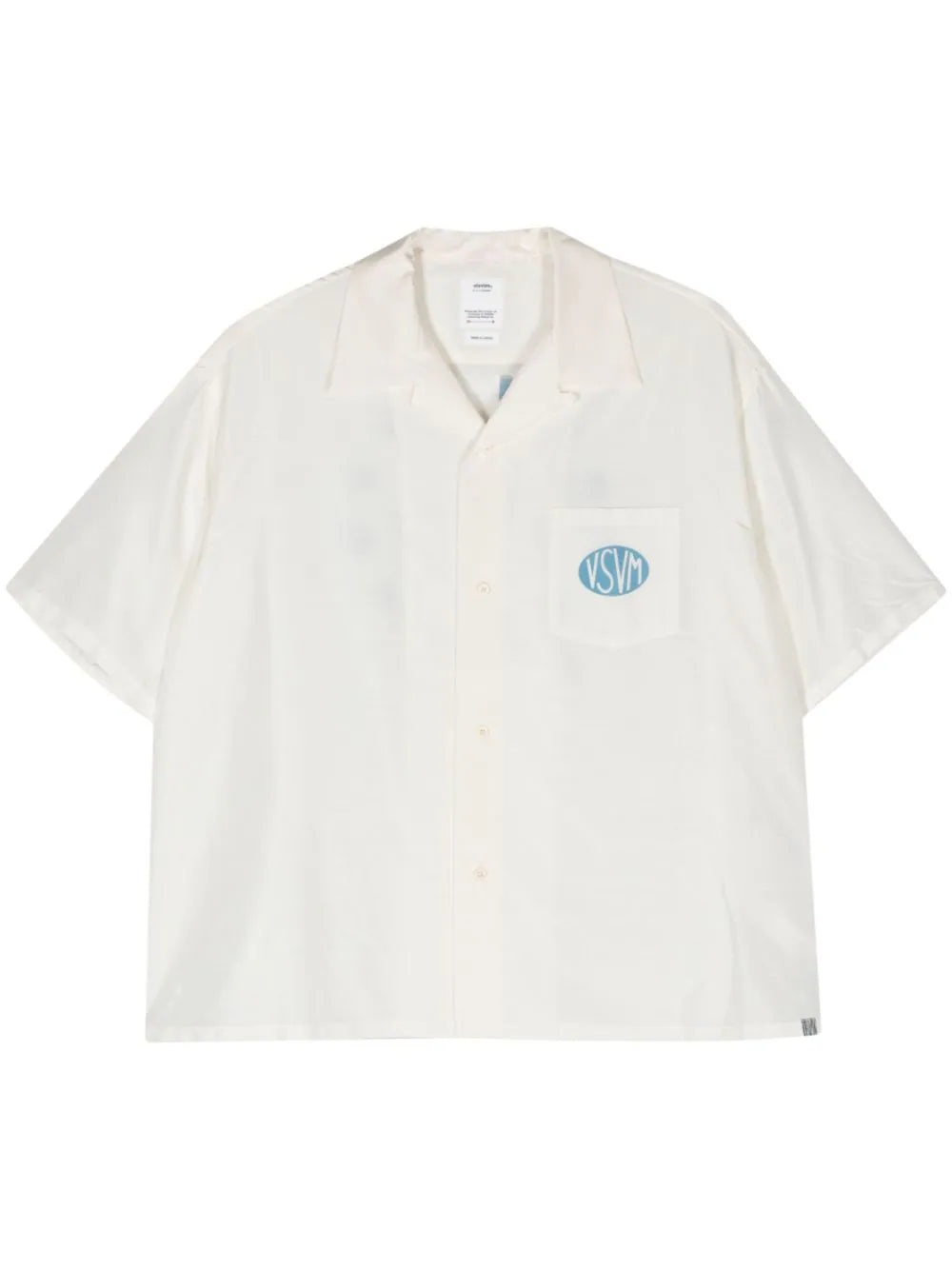 OFF-WHITE SILK LOGO PRINT AT THE CHEST AND REAR CAMP COLLAR FRONT BUTTON FASTENING DROP SHOULDER SHORT SLEEVES CHEST PATCH POCKET STRAIGHT HEM