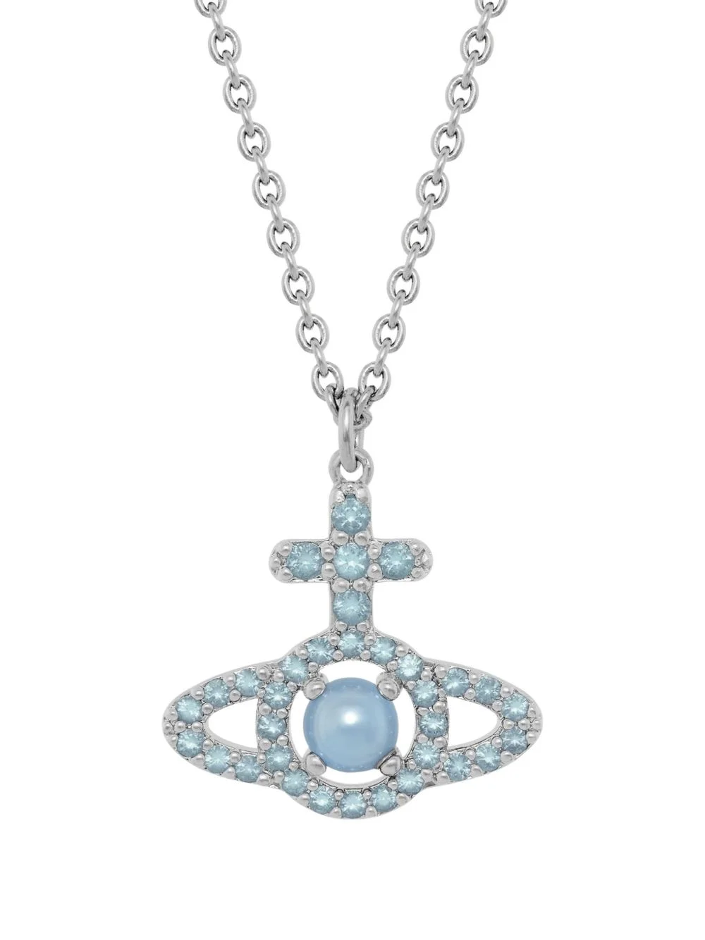 ELEVATE YOUR EVERYDAY STYLE WITH THE OLYMPIA PEARL ORB-PENDANT NECKLACE, FEATURING A STRIKING SILVER-TONE FINISH PAIRED WITH A SOFT LIGHT BLUE ORB AND DELICATE CROSS DETAIL. PERFECT FOR LAYERING OR WEARING SOLO, THIS VERSATILE PIECE ADDS A TOUCH OF ELEGANCE TO ANY OUTFIT. TO PRESERVE THE LUSTRE OF THE GEMSTONES AND SILVER SURFACES, USE NON-ABRASIVE JEWELLERY CLEANING PRODUCTS SPECIFICALLY DESIGNED FOR FINE PIECES. REGULAR GENTLE CARE WILL KEEP YOUR NECKLACE LOOKING RADIANT FOR YEARS TO COME.