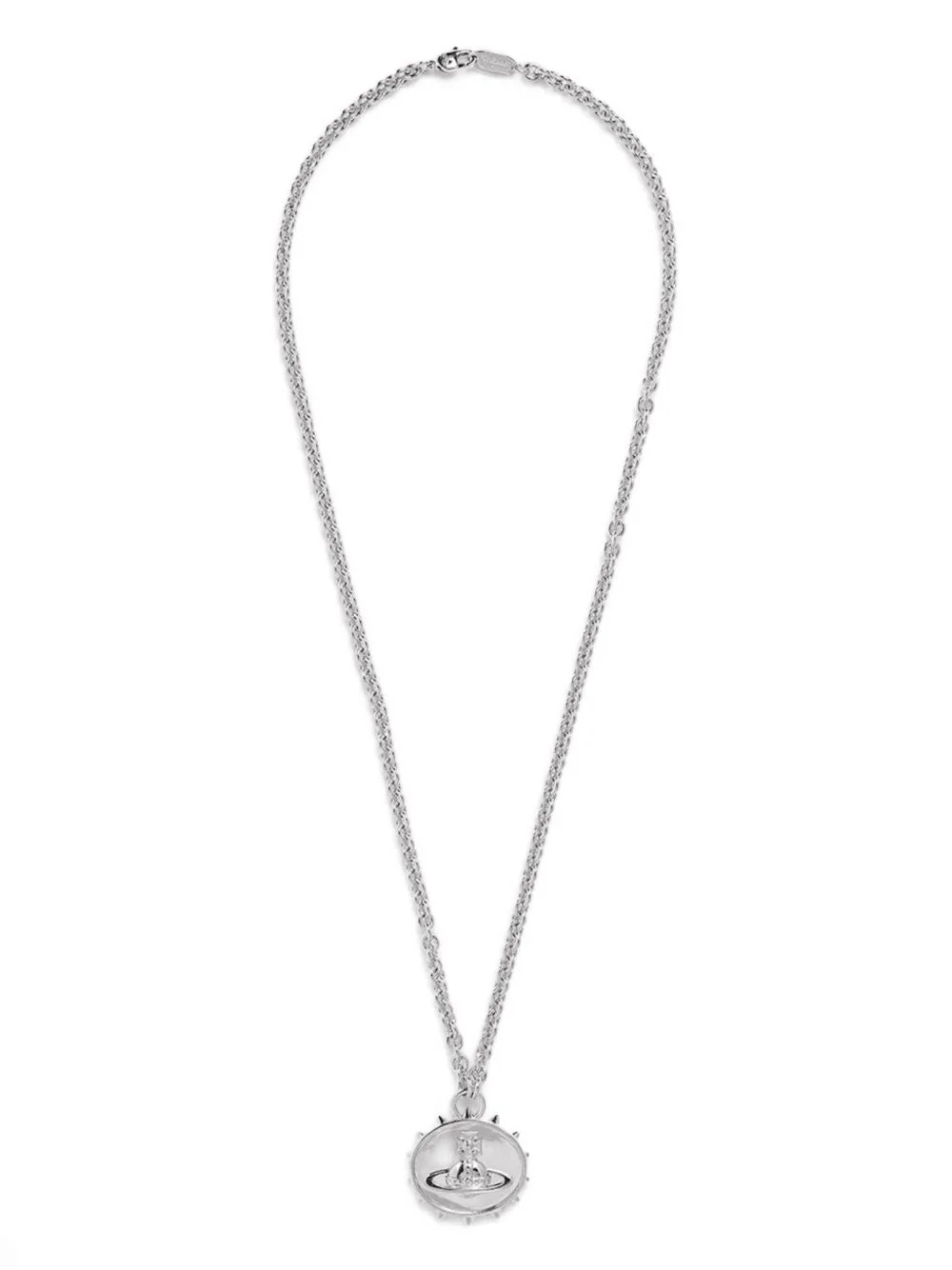 THE ORB-PENDANT NECKLACE PRESENTS CONTEMPORARY JEWELLERY DESIGN THROUGH ITS DISTINCTIVE SILVER-TONE CONSTRUCTION. THE ROUND PENDANT FEATURES AN INTEGRATED LOGO MOTIF AND STRIKING SPIKE DETAIL, CREATING VISUAL DEPTH AND CHARACTER. A CHAIN-LINK SUSPENSION ENSURES SECURE WEAR WHILST MAINTAINING ELEGANT PROPORTIONS THAT COMPLEMENT BOTH MINIMALIST AND LAYERED STYLING APPROACHES. SILVER-TONE FINISH RESISTS TARNISHING, MAINTAINING ITS LUSTRE THROUGH REGULAR WEAR. THE PENDANT'S GEOMETRIC DESIGN BRIDGES CASUAL AND FORMAL CONTEXTS, OFFERING VERSATILE ACCESSORISING FOR THOSE SEEKING STATEMENT JEWELLERY WITH REFINED EXECUTION. AN INVESTMENT PIECE THAT ELEVATES EVERYDAY ENSEMBLES WHILST REMAINING SOPHISTICATED ENOUGH FOR SPECIAL OCCASIONS.