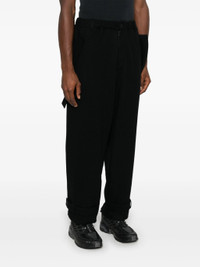 BLACK WOOL BLEND BELT LOOPS TWO SIDE SLASH POCKETS PATCH DETAIL DROP CROTCH BUTTON-FASTENING ANKLE STRAP TWO REAR PATCH POCKETS ELASTICATED DRAWSTRING WAISTBAND CONCEALED FLY AND BUTTON FASTENING
