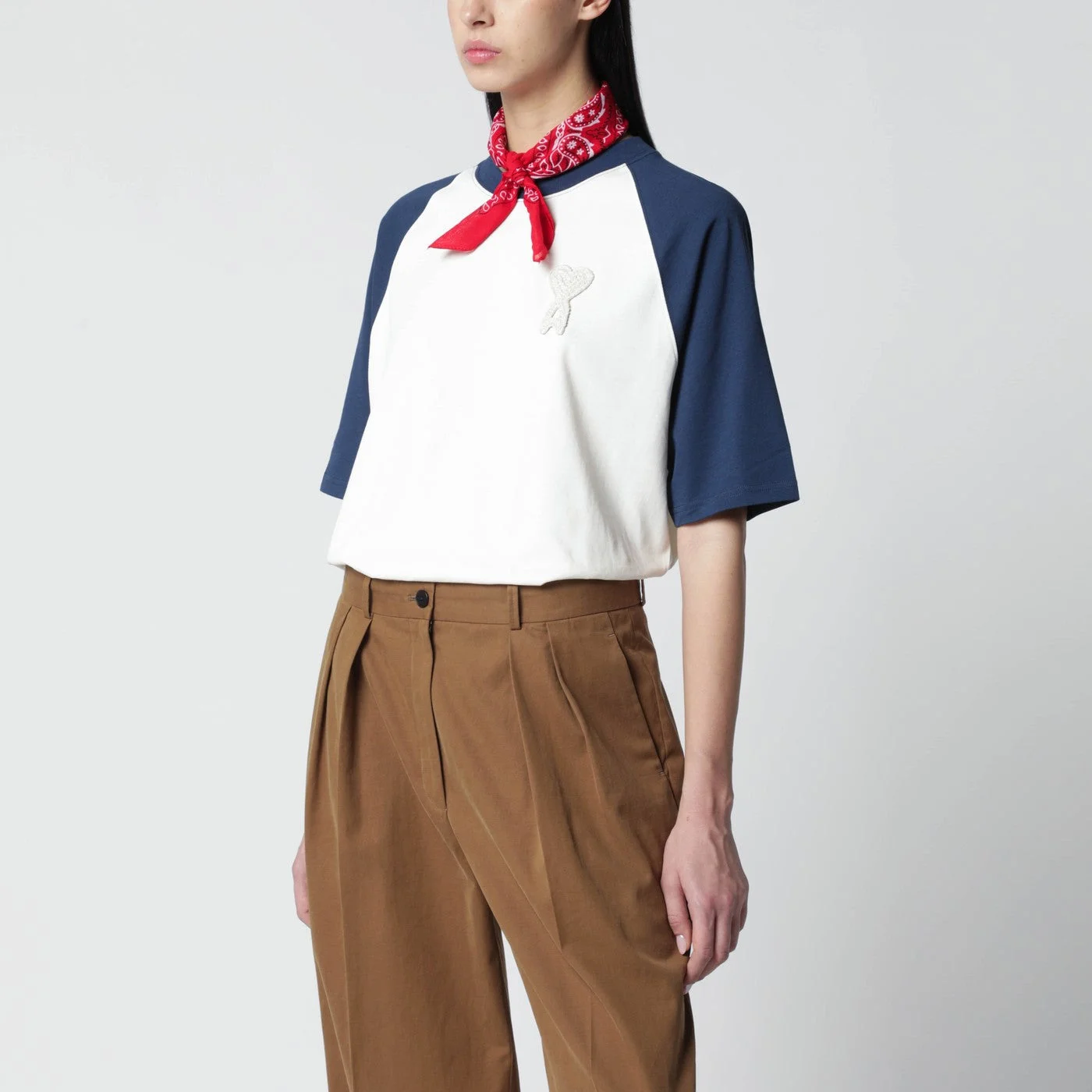 T-shirt by Ami Paris in cream white and ink blue cotton• Short sleeves• Ribbed crewneck• Tone-on-tone raised Ami de Coeur logo on the chest