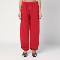 Wide joggers by Anine Bing in red brushed cotton blend, featuring an elasticated waistband, two side welt pockets, and tone-on-tone logo embroidery on the front.