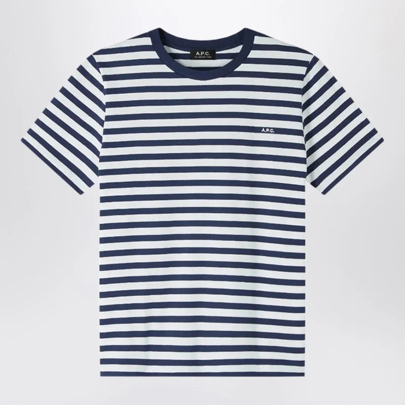 A.P.C. cotton T-shirt with navy blue and white stripes, featuring a crew neck, short sleeves and an embroidered logo on the chest.