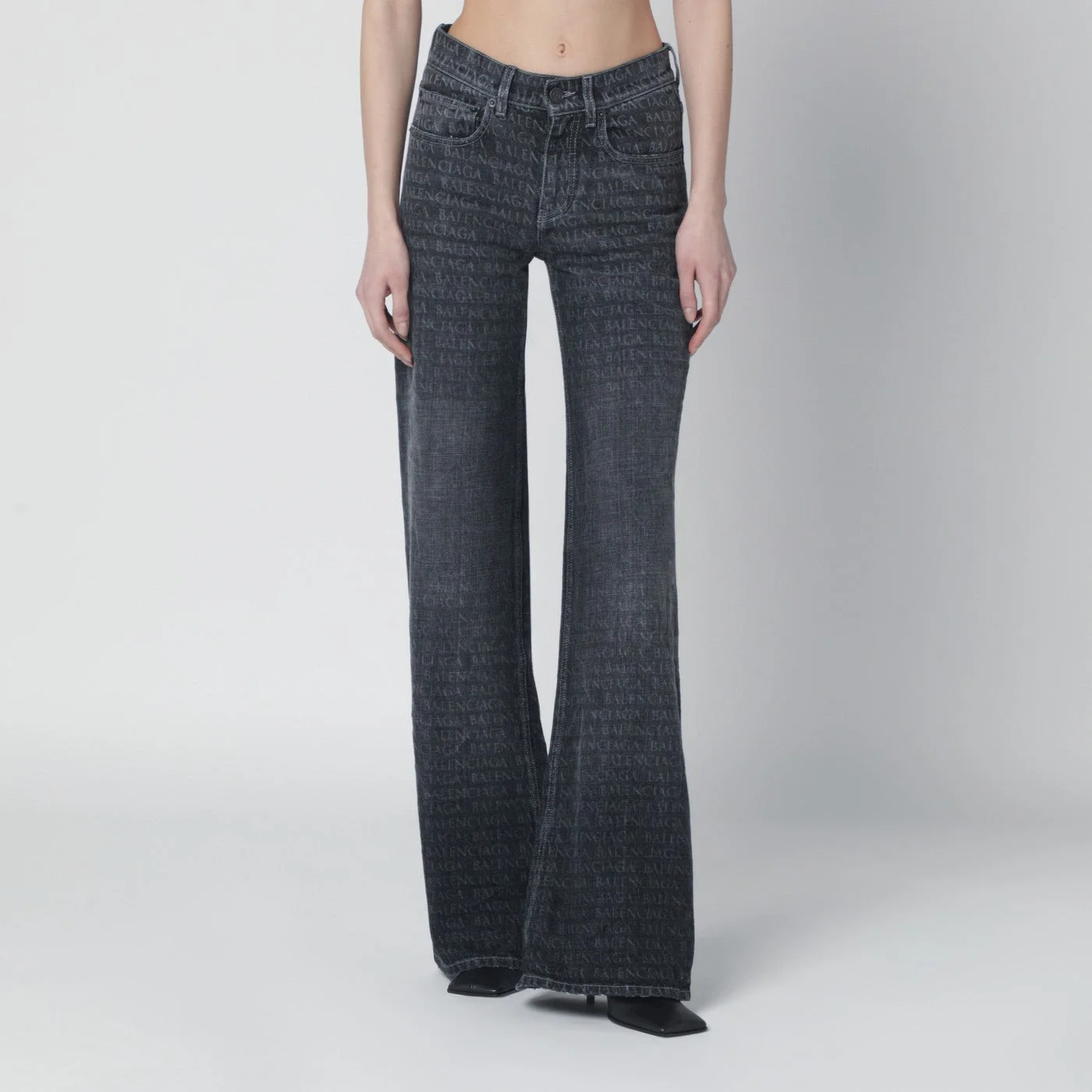 Jeans by Balenciaga in washed-effect black cotton denim• Wide leg• Front zip and button closure• High waist with belt loops• Classic five pockets• All-over jacquard logo lettering