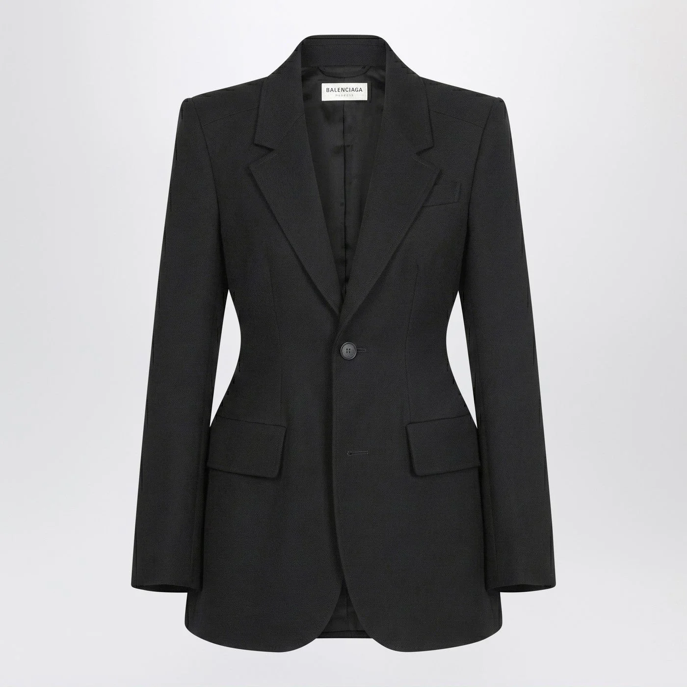 Jacket by Balenciaga in black wool twill featuring darts notched lapel collar single-breasted button closure two pockets long sleeves buttoned cuffs chest welt pocket and front button fastening.