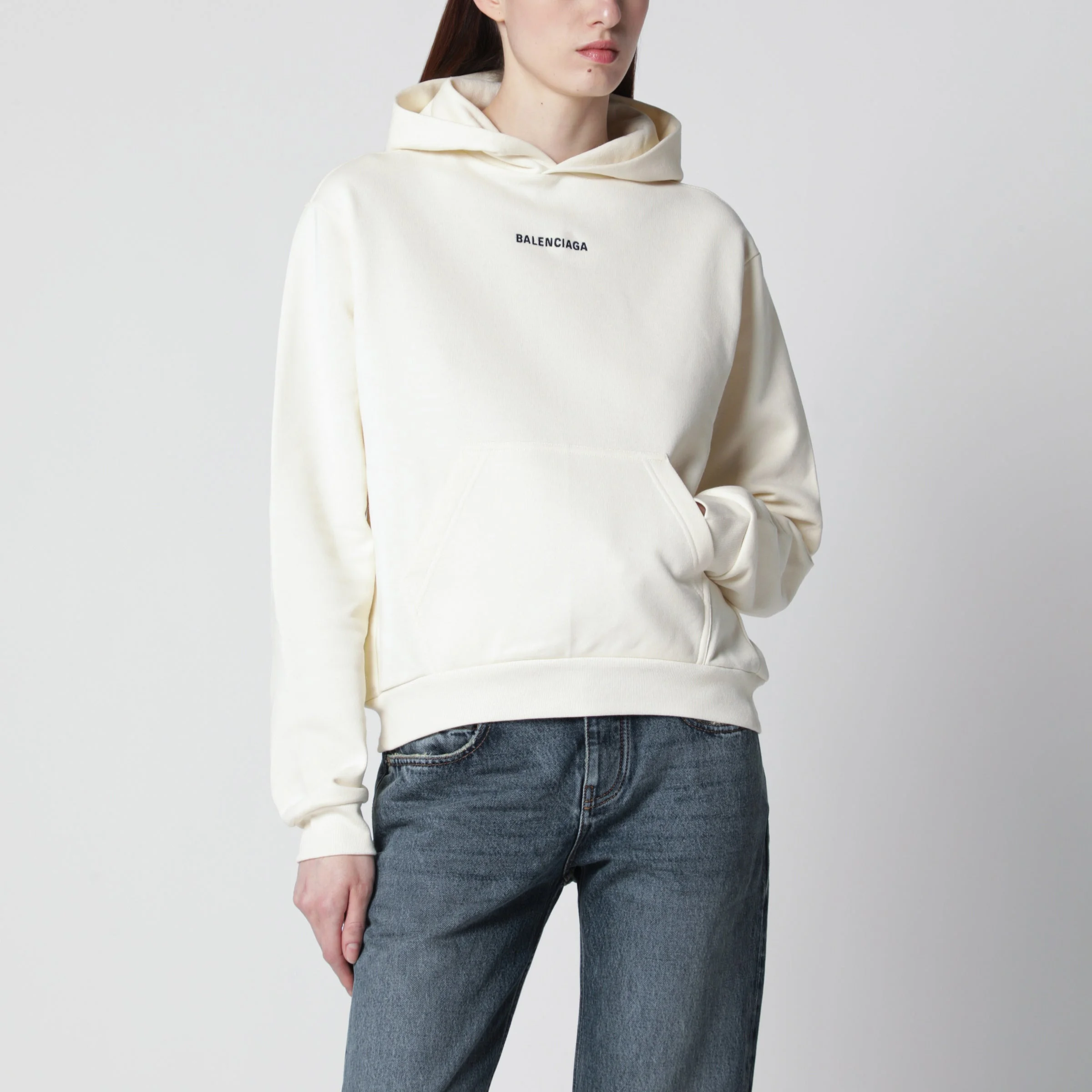 Balenciaga Back medium-fit hoodie by Balenciaga.• Color: Cream• Dry fleece finish• Hood without drawstring• Soft shoulders• Front kangaroo pocket• Ribbed cuffs and hem• Balenciaga Back embroidered motif on front and back• Medium fit
