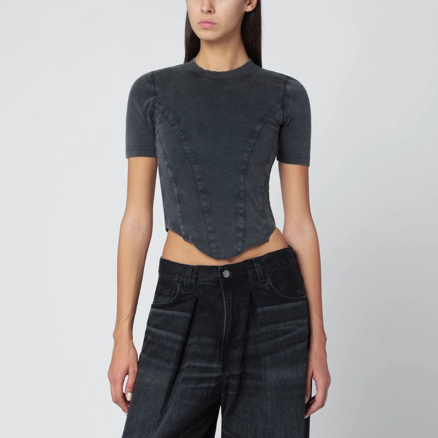 Washed black corset-style T-shirt