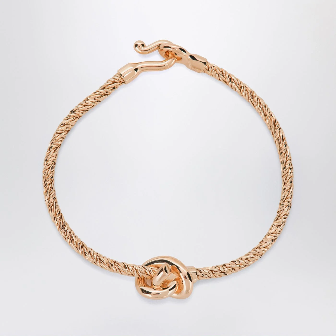 Bottega Veneta bracelet in gold-plated sterling silver featuring an Intrecciato pattern hook closure and Knot logo detail.