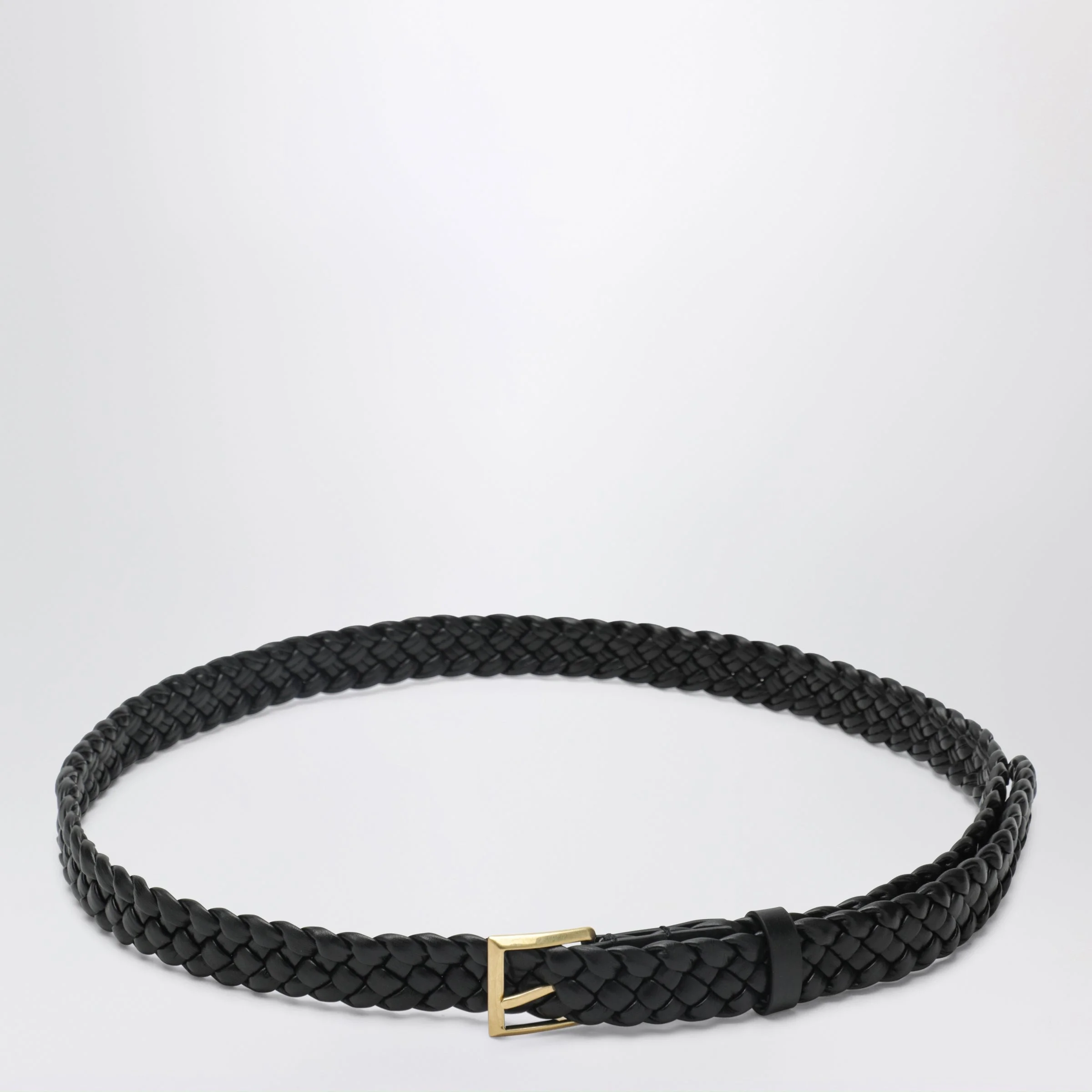 Calfskin leather belt by Bottega Veneta• Color: Black• Intrecciato weave• Metal buckle• Pin closure• Metal hardware with brass finish