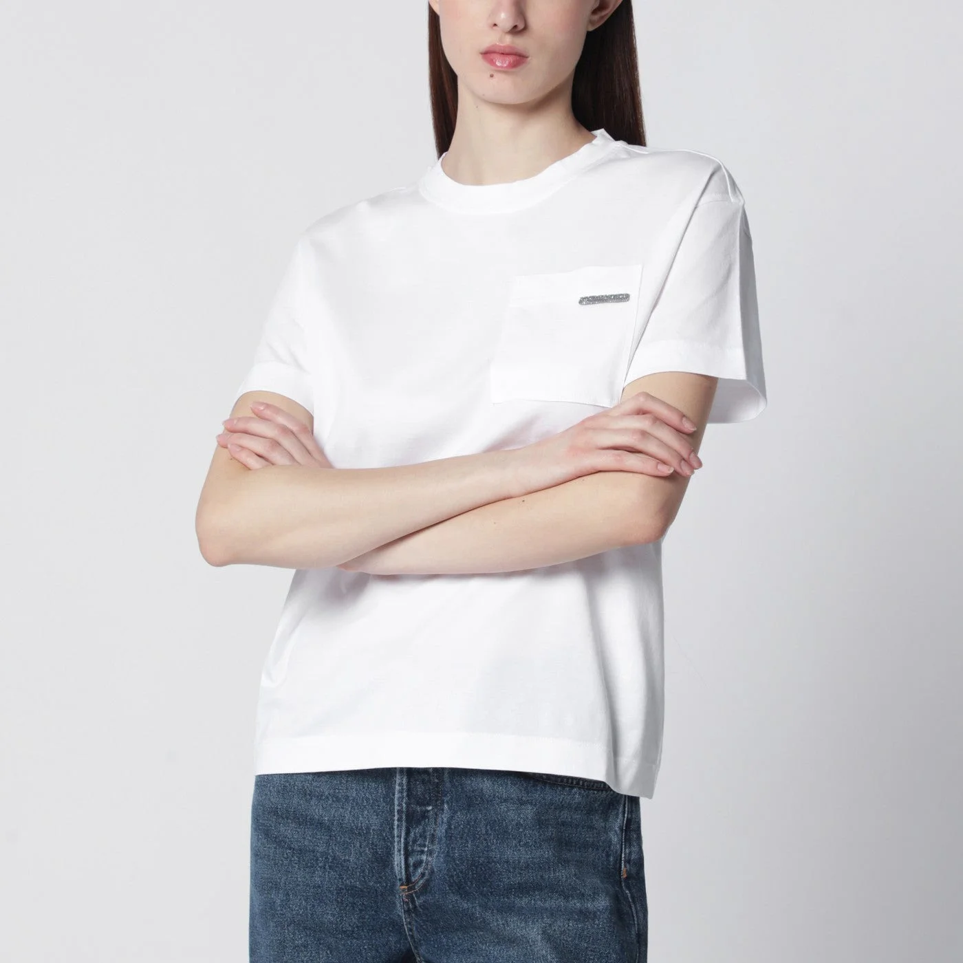 T-shirt by Brunello Cucinelli in white cotton jersey• Crew-neck design• Short sleeves• Chest pocket• Nickel-free monili decoration