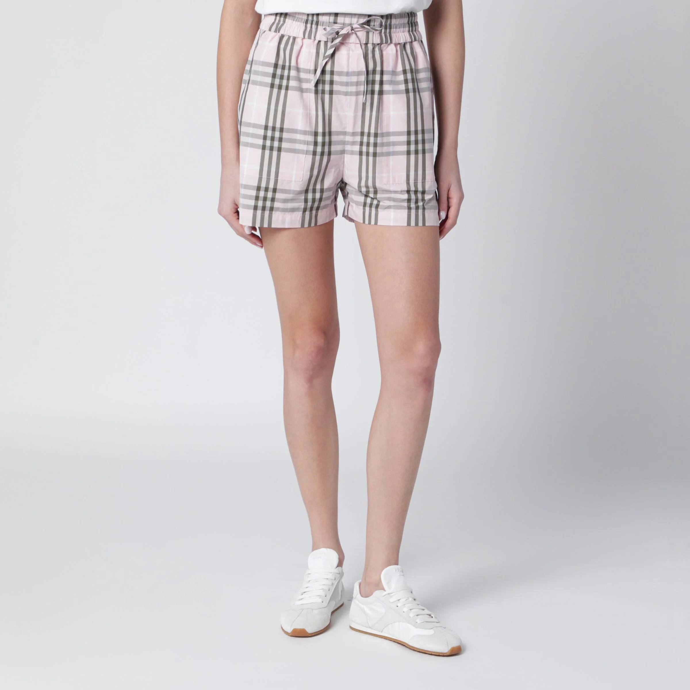 Shorts by Burberry in cotton• Color: Mallow Pink• Check pattern• Elasticated waistband with drawstring• Side welt pockets• Embroidered Equestrian Knight Design on the front