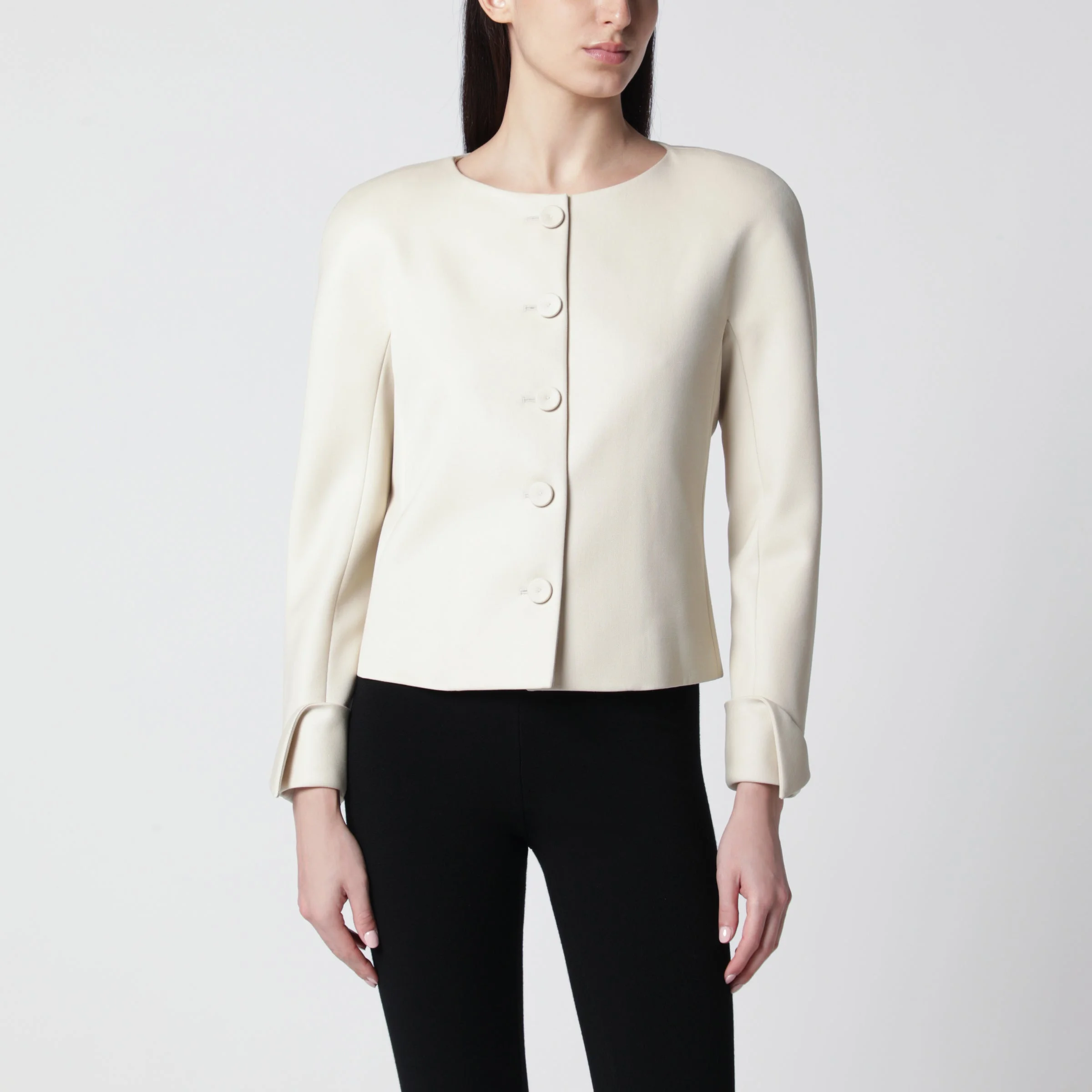 Collarless slim-fit grain de poudre wool jacket by Chloe.• Color: Desertic Brown• Collarless design• Turned-up cuffs• Fabric-covered front buttons• Slim fit