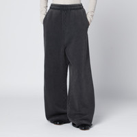 Black washed cotton trousers by Entire Studios, featuring elastic waistband, two side pockets, one back pocket, raw-cut hem, and wide low-crotch leg.