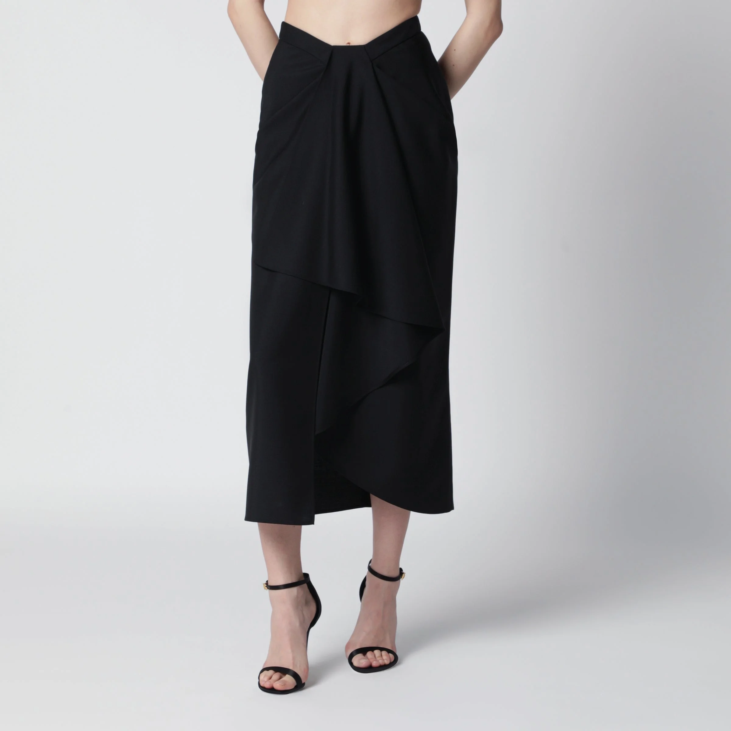 Skirt in wool and mohair by Givenchy• Color: Black• Draped front• Front slits for fluid movement• Two front pockets• Invisible zip closure at the back