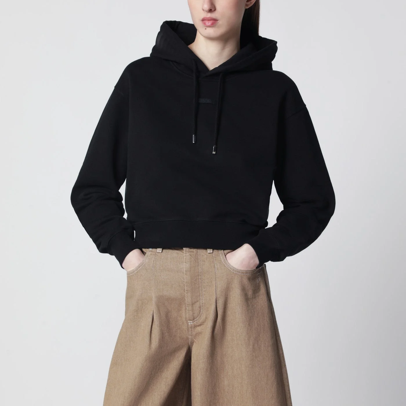 Hoodie in black cotton fleece• Classic cropped cut• Grosgrain logo embroidered on the chest• Ribbed cuffs and hems