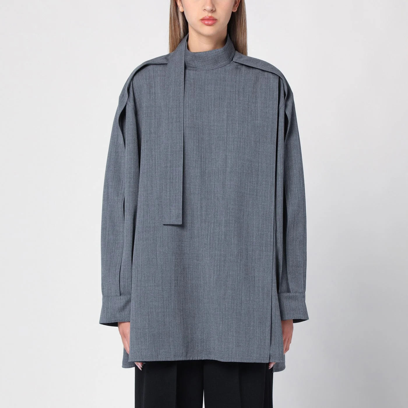 Grey wool shirt with scarf