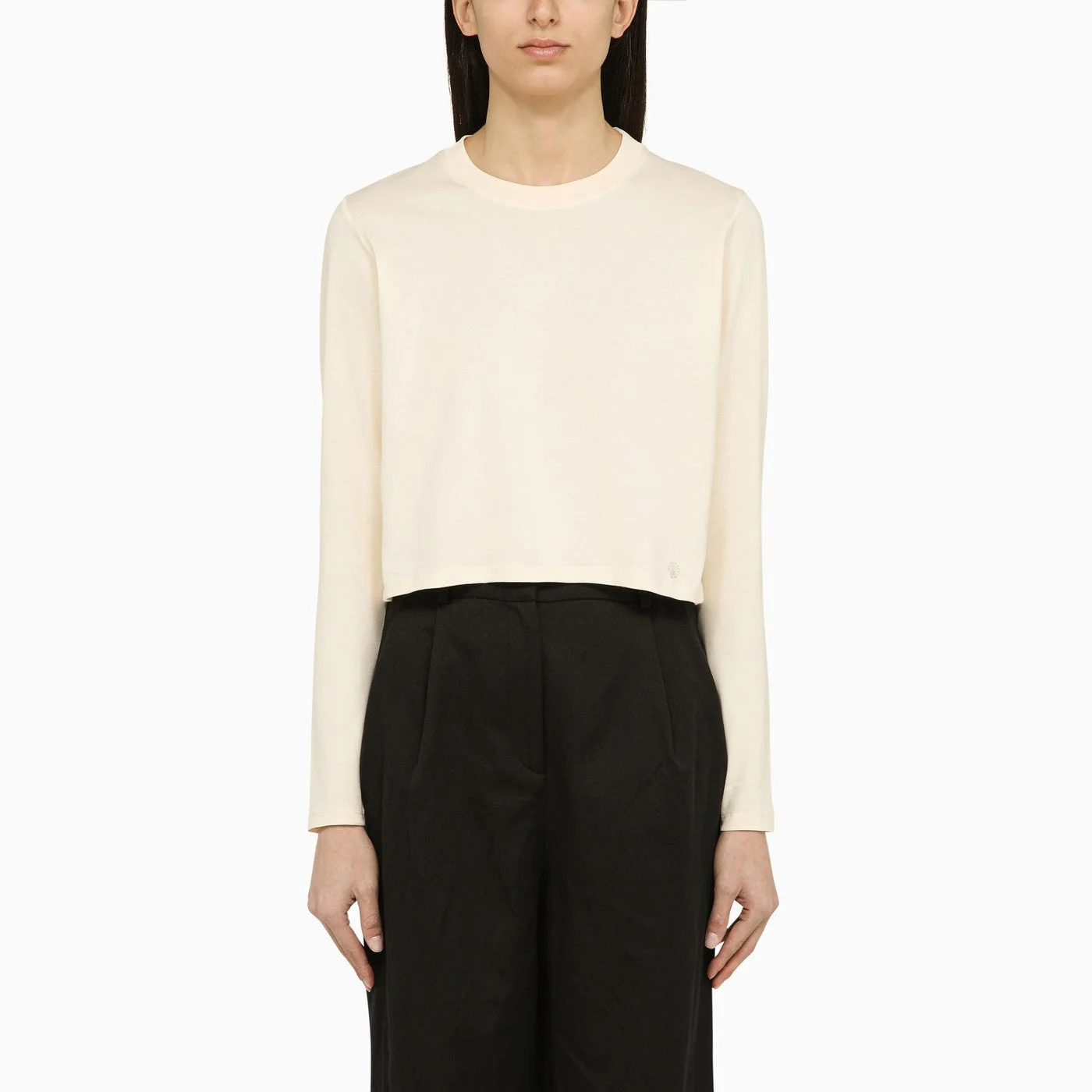 Ivory cotton crew-neck sweater by LouLou de Saison features long sleeves and a straight hem.