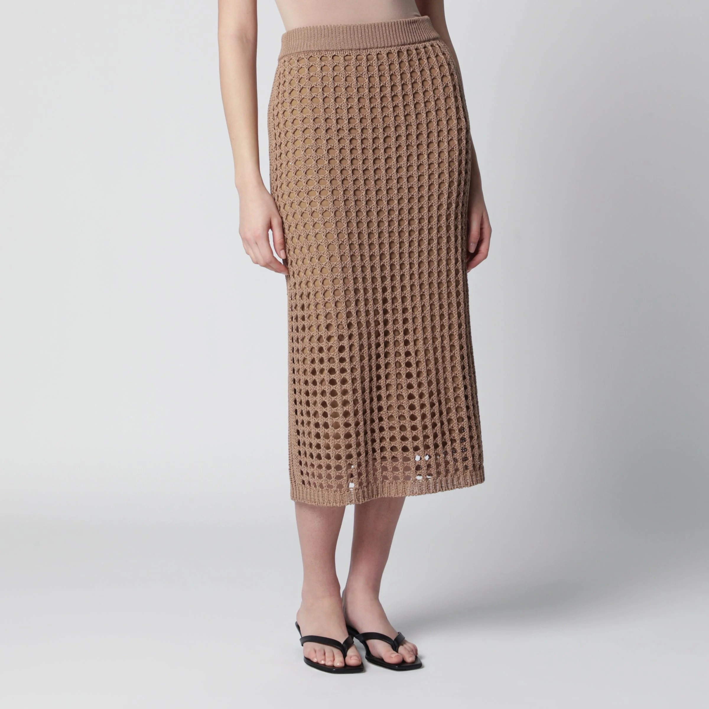 Cotton mesh long skirt with see-through effect by.• Color: Desert• See-through mesh knit construction• Ribbed details along the sides• Straight-line silhouette• Ribbed elasticated waistband• Tone-on-tone cotton lining