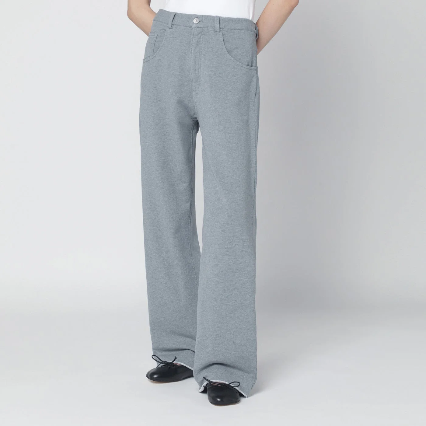 MM6 Maison Margiela jogging-style trousers in grey melange cotton• Front zip and button closure• Belt loops• Five-pocket design• Raw-cut hem• Elasticated back waistband• White stitch line logo on the back