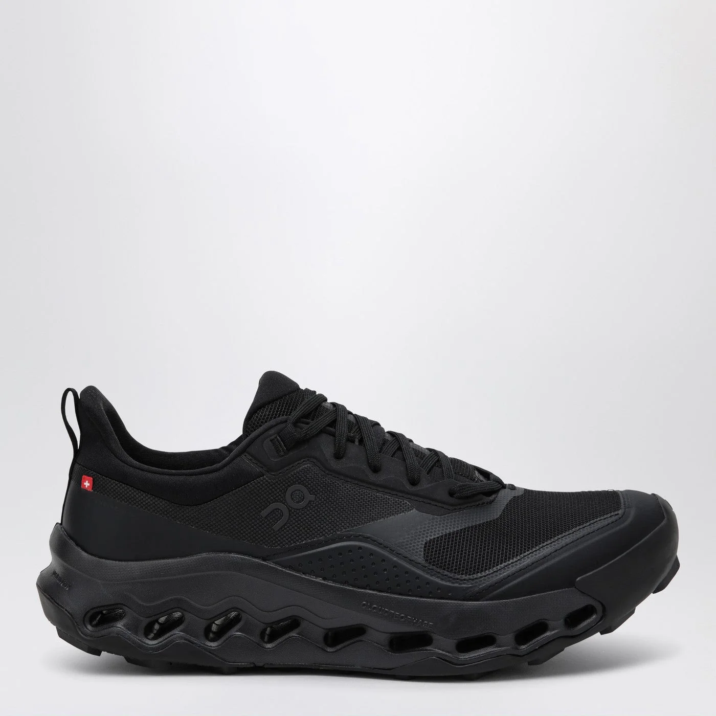 On sneakers in black technical fabric featuring a round toe lace-up closure tone-on-tone side and tongue logo and iconic perforated CloudTec rubber sole.