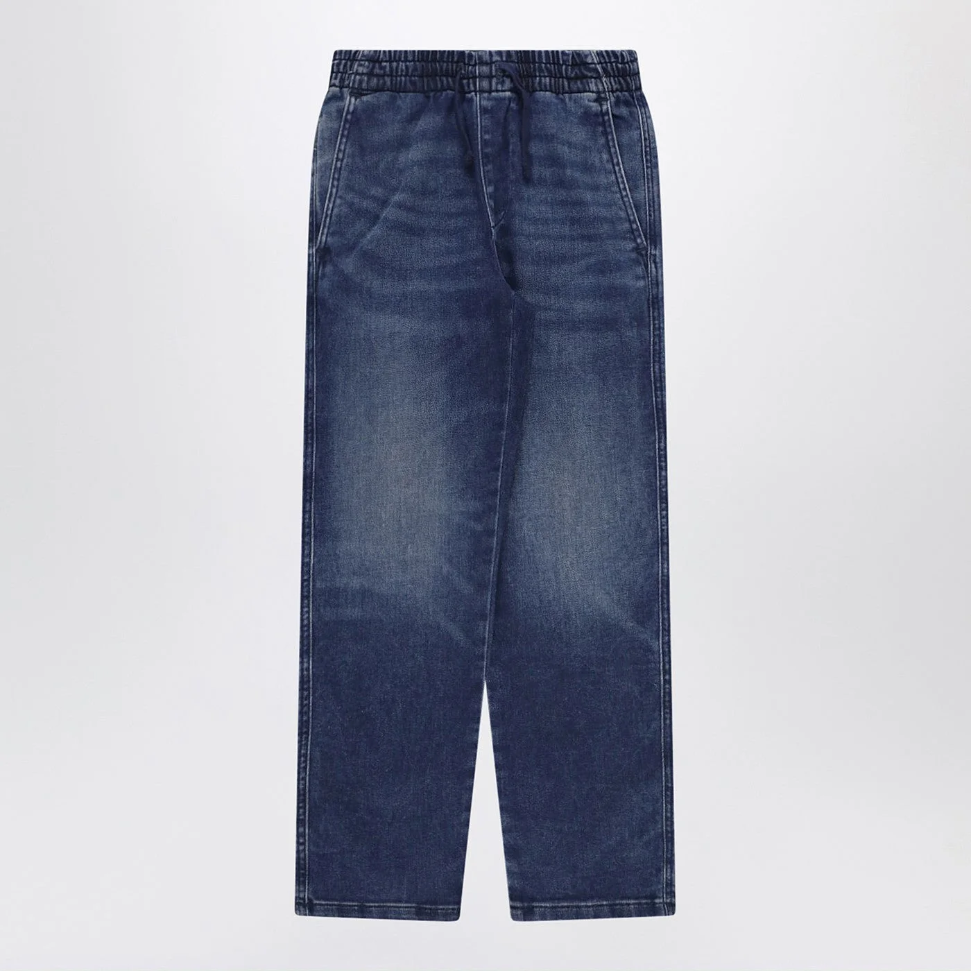 Jeans in blue washed-out cotton denim by Polo Ralph Lauren featuring two side welt pockets an elasticated waistband with drawstring and two back welt pockets with contrasting embroidered logo.