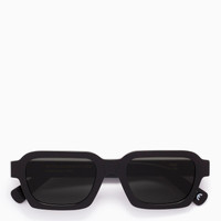 Sunglasses with a black acetate frame by Retrosuperfuture, featuring a squared design, contrasting logo on the arms and black lenses.