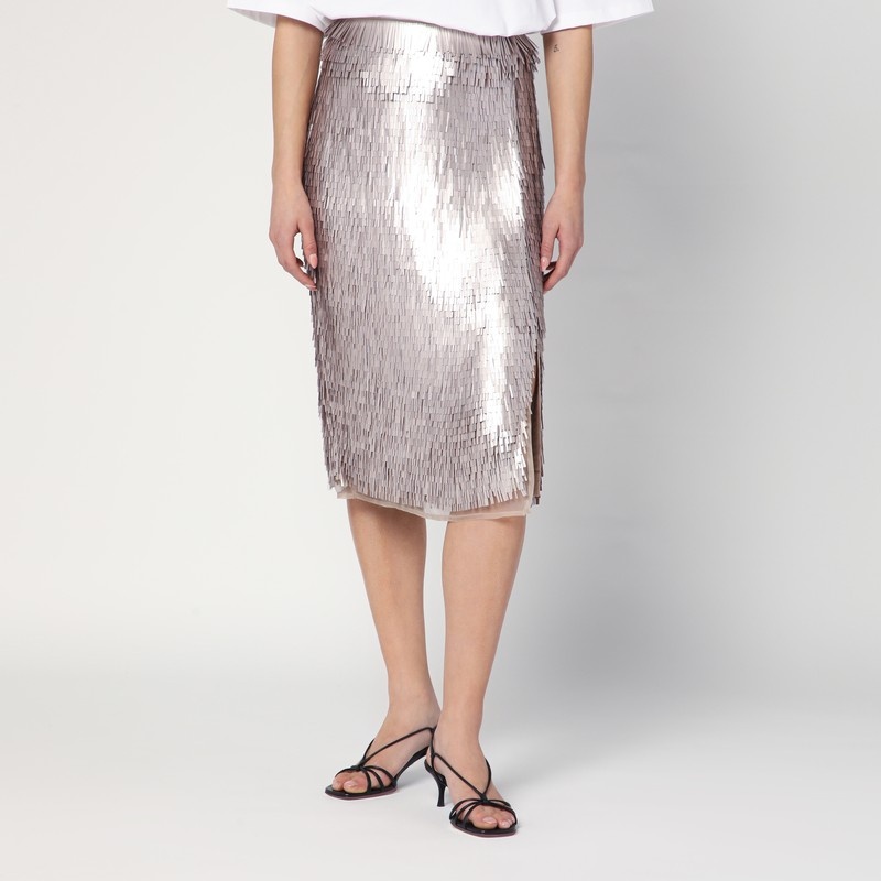 All over silver sequin pencil skirt from Rohe featuring a front slit and side zip fastening.