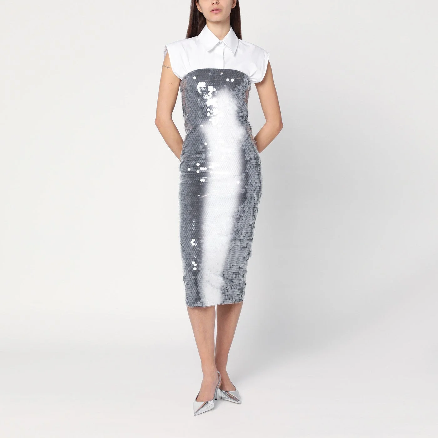 Sleeveless Longuette dress by Sportmax in gradient technical jersey with all-over sequins characterized by a fitted design straight neckline lined internal bustier side zip closure and regular fit.