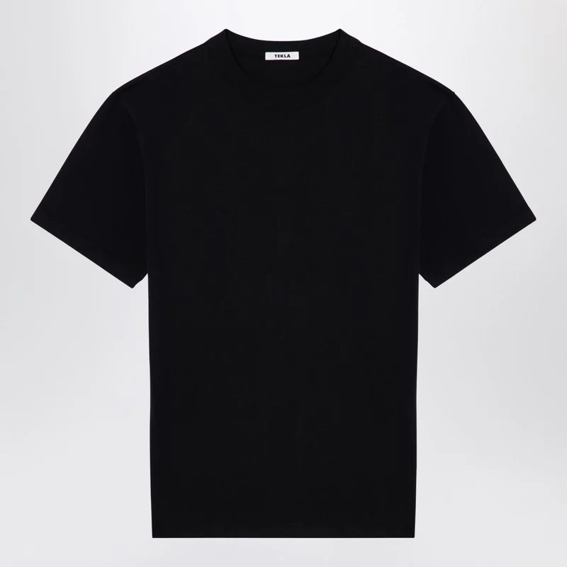 Tekla black cotton crew-neck T-shirt featuring short sleeves and a straight hem.