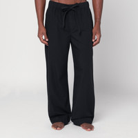Loose pyjama trousers in black organic cotton by Tekla, featuring a back patch pocket with logo tag and an elasticated waistband with drawstring.