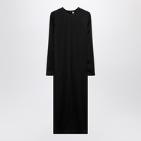 Midi crew-neck dress by TOTEME in black lustrous viscose, featuring back zip closure, long sleeves, and back slit.