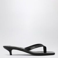 TOTEME flip-flops in black leather, characterized by an open square toe, heel, and leather sole.