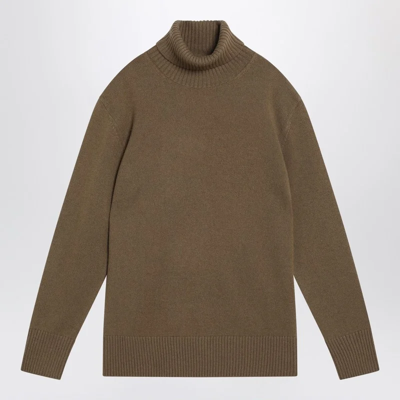 Light brown cashmere sweater by TOTEME, featuring high neck, long sleeves, and ribbed trims.