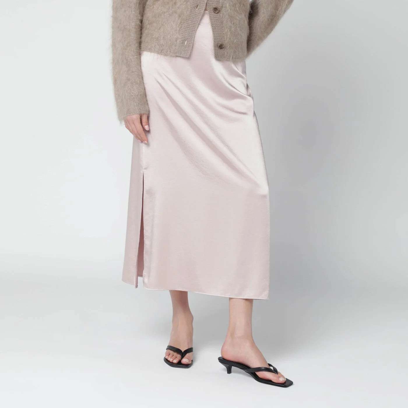 Blush satin midi skirt
