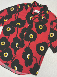 AMI Paris - Floral Print Vacation Shirt Tagged Size: 39 Color: Red/ Black Good Condition *Sign of Use(It has a washable stain on the back part of the left sleeve. Washable dirts. Lints.) Measurements in Inches(Laid Flat): Shoulder Width: 18” Width: 22” Sleeve Length: 12” Length: 28” Hem: 21” Details: - Summer style with a side of floral fun, this red vacation shirt from AMI is made using lightweight viscose. Patterned with black and yellow poppies, it’s detailed with an open camp collar, fastened with buttons, and completed with a single chest pocket. •100% Viscose •Box Pleat •Button Closure •Patch Pocket •Made in Poland