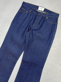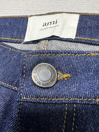 AMI Paris - Mid Rise Flared Jeans Tagged Size: 27 Color: Indigo Excellent Condition Measurements in Inches(Laid Flat): Waist: 14.5” Front Rise: 9” Hip: 16.5” Thigh: 9.5” Length: 44” Knee: 7.5” Inseam: 34” Leg Opening: 10” Details: - Ami Paris five-pocket jeans crafted in cotton denim. Characterized by a fitted silhouette with high-rise waist and flared leg, they feature zipper and button fly and back logoed jacron. Bootcut fit. •Composition: 100% Cotton •Made in Portugal
