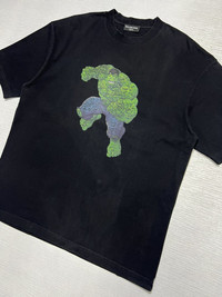 Balenciaga - Marvel - “Incredible Hulk” T-Shirt Tagged Size: Extra Small Color: Black Condition: 9/10 *Sign of Use(It has a small hole on the front part of the shirt, crack prints and slightly faded.) Made In: Portugal Measurements in Inches(Laid Flat): Shoulder Width: 21” Width: 22” Sleeve Length: 9.5” Length: 28” Details: - Add a playful touch to your outfit with this black tee from Balenciaga. It’s crafted from vintage jersey and promises a relaxed fit, complete with Marvel’s Hulk graphic printed on the chest. •100% Cotton •Ribbed Crewneck •Printed Branding Manage your expectation and buy with confidence. Take your measurements and know your size because Returns/Refunds are not allowed. Come correct all the time. All sales are final. Please leave your Phone Number and Email Address on the NOTE while making a purchase. Please check my other listings and take advantage of combined shipping rates or special discounts. Thank you very much for your visit.