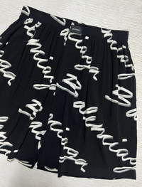 Balenciaga - Scribble Logo Bermuda Shorts Size 50, fits 30-34 Gently Used Good Condition Normal Sign of Use *Flaws: It has a repaired hole on the upper right front part. It has a small tear/hole beside the right pocket. It has a pinhole on the lower front part. Lints. No Inclusion Measurements in Inches(Laid Flat): Waist: 14.5” Front Rise: 15” Hip: 21” Thigh: 14” Length: 19.5” Inseam: 4.5” Leg Opening: 14”